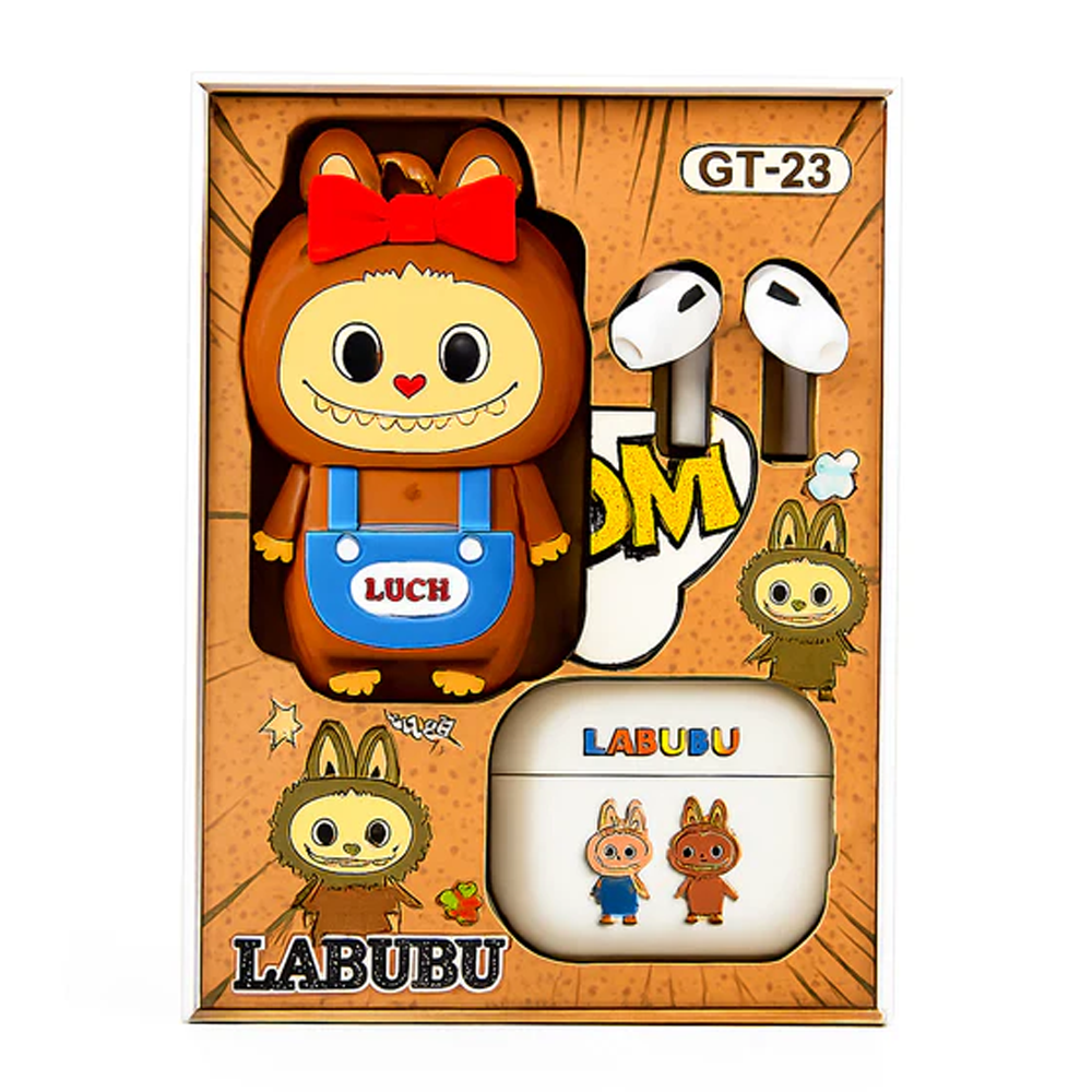 abubu GT-23 Wireless Earbuds — Stylish earbuds paired with an adorable Labubu cartoon toy. Offers high-quality wireless audio, comfortable fit, and a fun collectible design for music lovers and fans alike.